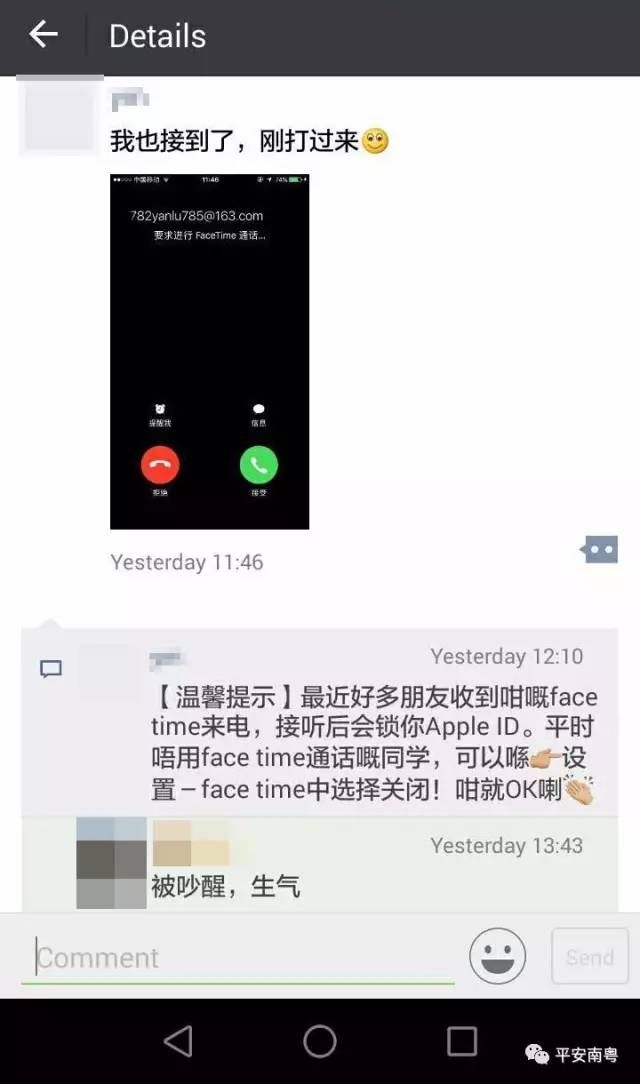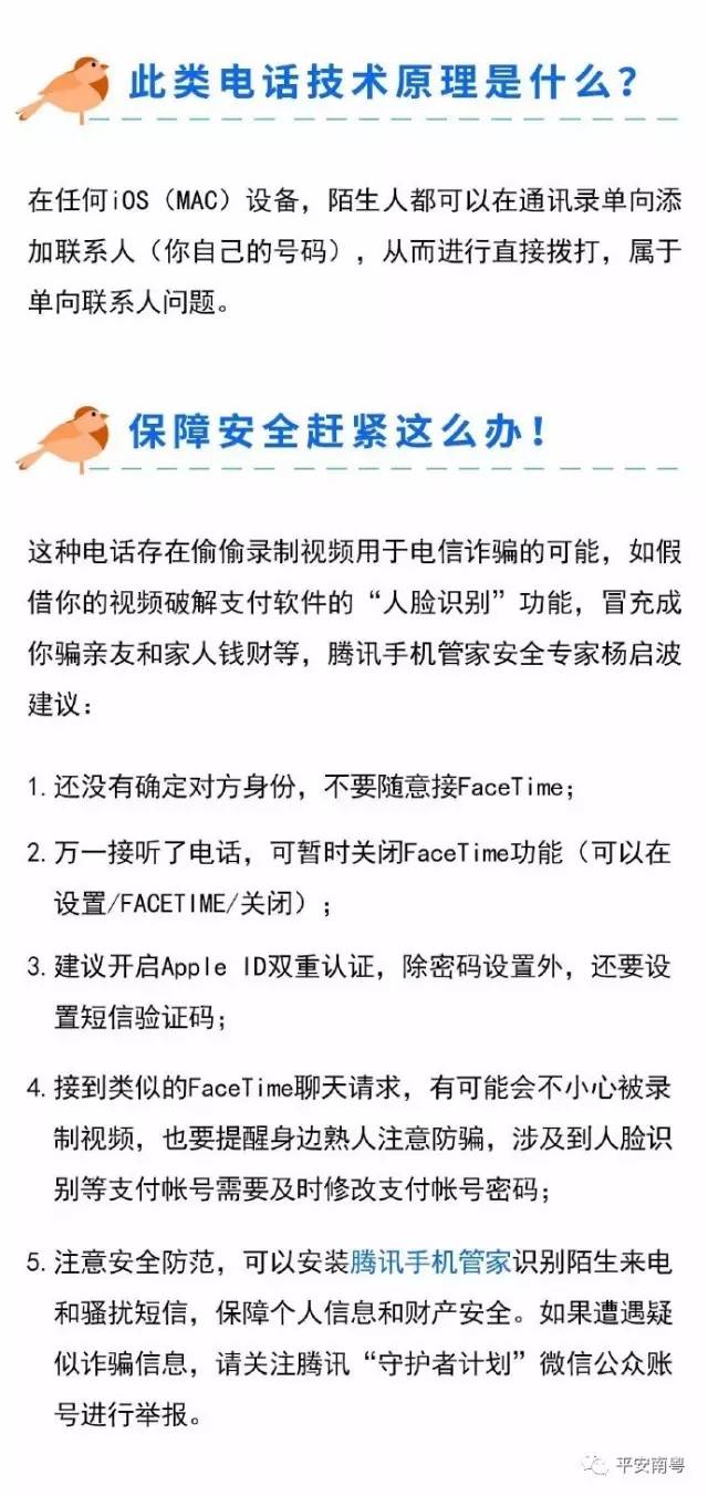 据腾讯手机管家发布消息称,经验证,目前出现类似电话facetime的视频诈骗,接听时,就有可能被录制视频。这一旦被诈骗份子利用,可用于人脸识别,熟人诈骗方面。