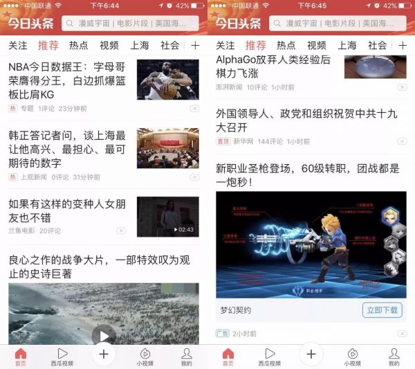今日头条的信息流形式